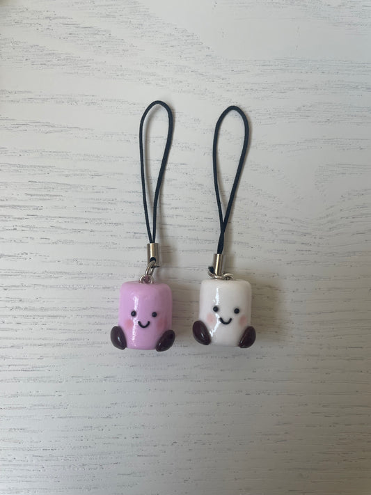 Jelly Inspired Pink and White Marshmallow Keyring